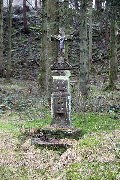 An der Straße nach Sankt Thomas, etwas oberhalb der Häusergruppe Am Wasserfall: Bildstock von 1827 mit weit hochgezogenem, breitem Sockel, hier die Relieffigur der Maria auf der Mondsichel; die darunter angebrachte Inschrift nennt außer der Jahreszahl die Errichterin MARIA SCENTEN VON GRIMBACH. Die Vorderseite des niedrigen Schaftes ganz von einem Malteserkreuz eingenommen. Das stilistisch unpassende jüngere Abschlußkreuz mit Astknoten und Metallkorpus.