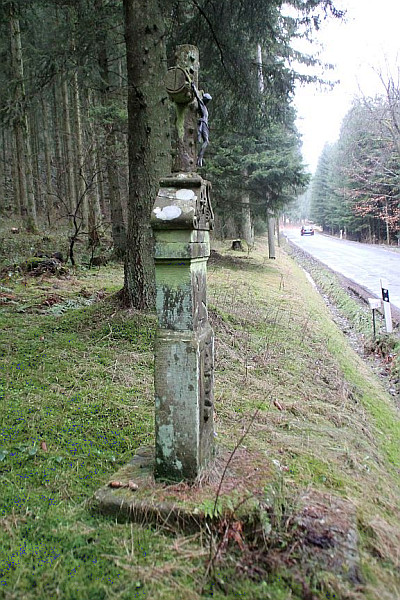 Bis vor einigen Jahren stand der Bildstock in einem Acker auf der Höhe westlich des Ortes, wo er den ursprünglichen Verlauf der später verlegten Straße von Neidenbach nach Waxbrunnen markierte. [1]