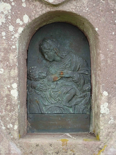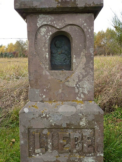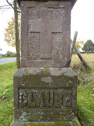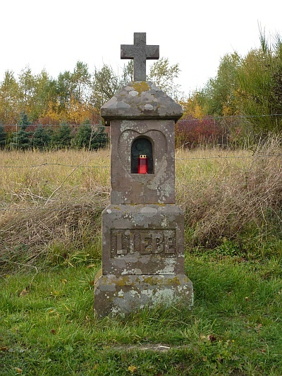 An der Straße nach Sankt Thomas, beim Abzweig des Weges nach Mohrweiler: Niedriges Sockelkreuz, 1872 durch die im Maierhof wohnende Familie Müller errichtet.