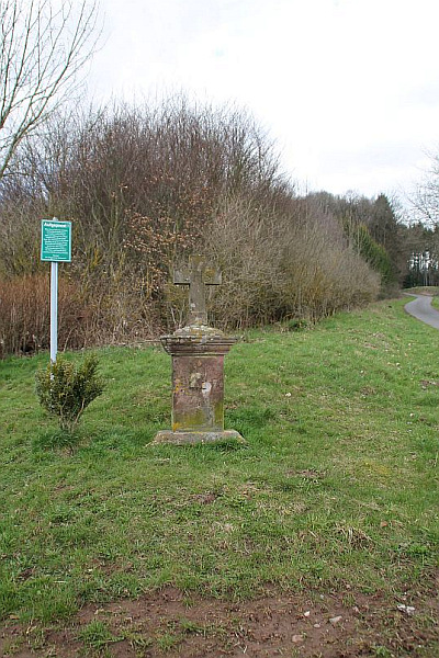 Am früheren Weg nach Balesfeld, oberhalb des heutigen Friedhofs: Kleiner Bildstock, 1844 durch Anna Maria Schenten errichtet. Der allein erhaltene Sockel trägt außer der kaum noch lesbaren Inschrift eine ebenfalls stark verwitterte figürliche Darstellung. Auf dem weit ausladenden Abschlußgesims stand vermutlich eine große Reliefplatte oder eine Kreuzigungsgruppe. [1]