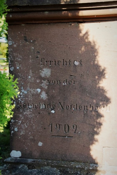 Die auf beiden Seiten des Unterbaus identisch angebrachte Inschrift nennt als Errichter die Gemeinde Neidenbach, die nach einer aus französischer Zeit stammende Verordnung für die Anlage und Pflege des Friedhofs zuständig war. [1]