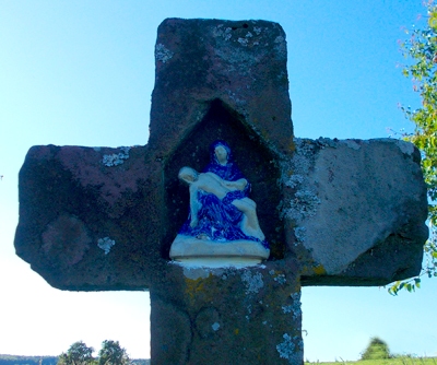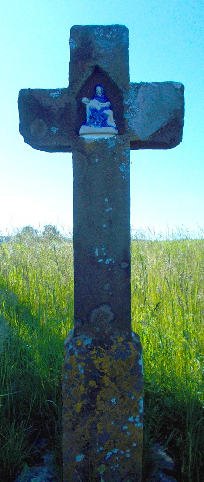 Südwestlich des Ortes, am Weg in Richtung Kyll. Einfaches Balkenkreuz auf etwas breiterem Sockel, am Schnittpunkt der Balken eine kleine, spitzgieblige Nische eingetieft. Darunter lange Inschrift, stark verwittert und zerkratzt, deshalb nur noch einzelne Wörter lesbar. Wegen der fehlenden Schmuckformen nicht zu datieren. [1]