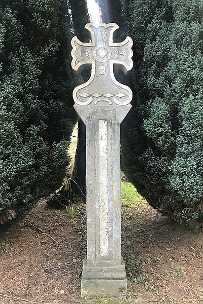 Das an den Kreuzbalken ANNO 1824 bezeichnete Kreuz wurde nach Beschädigung in den 1930er Jahren erneuert. Formal und ikonographisch steht es in Beziehung zum Jubiläumskreuz. [1]