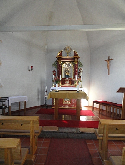 Katholische Kapelle (s. t. s. Blasii) [...] ärmlicher Bau aus der 2. Hälfte des 18. Jahrhunderts. Saalform mit dreiseitigem Chorschluß, Flachbogenfenster, gebogene Holzdecke und vierseitigem verschiefertem Dachreiter.