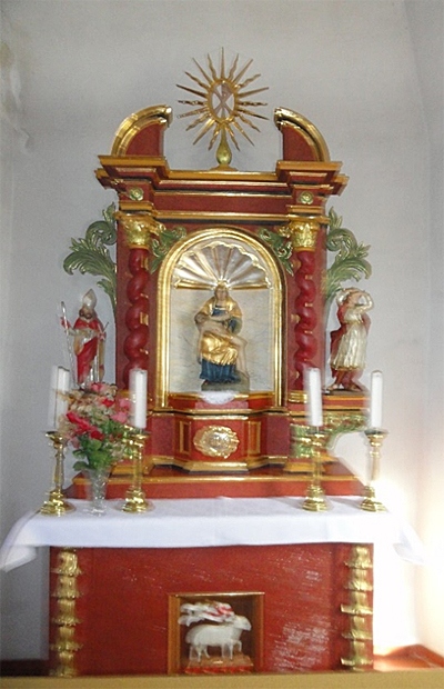 Das Dorfkirchlein ist in der zweiten Hälfte des 18. Jahrhunderts errichtet worden. Der im Stil des Barock gestaltete Altar zeigt in der Mitte eine Pieta, auf der Evangelienseite, für den vor dem Altar stehenden Betrachter also links, den Ortsheiligen, St. Blasius, mit zwei übereinander gekreuzten Kerzen und ihm gegen einen kaum bekannten Heiligen St. Quintinus, dem der Ort St. Quentin in Frankreich seinen Namen zu verdanken hat. Der als Helfer gegen Wassersucht verehrte Heilige drückt in der Oderter Darstellung seine von je einem Pfeil durchdrungenen Hände auf sein Haupt.
