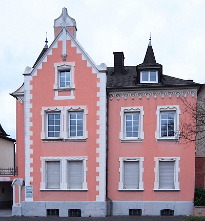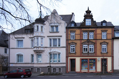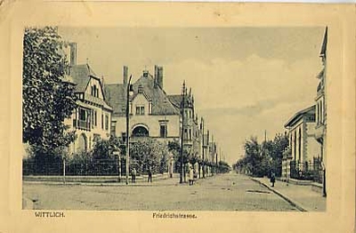 Der östliche Stadtausgang teilt sich wenig außerhalb der ehemaligen Stadtbefestigung in die Koblenzerstraße und die Friedrichstraße, letztere stellt in meist gerader Führung die Verbindung zur Bundesstraße 49 her, damit zu den eingemeindeten Dörfern Dorf, Neuerburg, Bombagen sowie zur Mosel (Alf). Die Bebauung setzte erst kurz vor 1900 ein. Wohlhabende Bürger errichteten sich hier noch im späten Historismus anspruchsvolle Wohnbauten mit Gärten. Der Bauinspektor Falles, erlei tete den Bau des Wittlicher Gefängnisses, hat die bedeutendsten Bauten wie das Casino und die großzügigen Villen (Nr. 1 und 3) am Anfang der Straße entworfen. Sein Mitarbeiter Gustav Karutz plante Nr. 21 / 23. In den 1920er Jahren wurden zwei Villen für die Eigentümer der Zigarrenfabrik Neuerburg gebaut. Zusammen mit der schon 1904 gegenüber errichteten Landwirtschaftsschule (Nr. 20) markierten sie bis in die Mitte unseres Jahrhunderts das östliche Ende der städtischen Bebauung. [1]