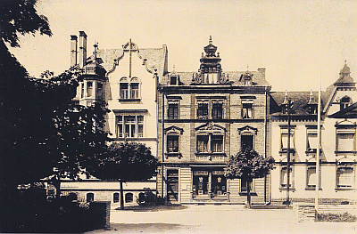Bild 4 zeigt die Häuser Friedrichstrasse 3 (Medizinalrat Dr. Ueberholz), 5 (Foto Becker/Höfer) und 7 (K. Meyer, Dampfziegelei), aufgenommen um 1942.