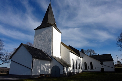 Die Hilgerather Kirche, die einsam auf einem Berg liegt, ist dem heiligen Hubertus geweiht. Der Ursprung der Bergkirche ist nicht geklärt. Vermutlich war sie einst die Kirche eines inzwischen untergegangenen Dorfes. Erstmals erwähnt wird sie im Jahre 1504. An den mittelalterlichen Wehrturm wurde zu Beginn des 19. Jahrhunderts ein neues Langhaus angefügt.