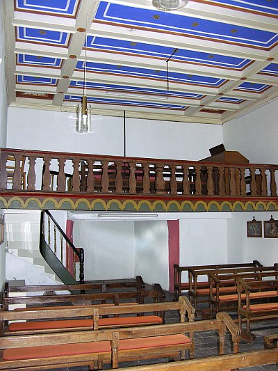 [...] Die Baugeschichte nicht geklärt; Schiff und Chor in der heutigen Erscheinung von 1848, vielleicht unter Einbeziehung älterer Teile. Den klassizistischen Gesamteindruck bestimmen außen die straffe Achsengliederung durch dicht gereihte Rundbogenfenster, der trotz des Einzugs in den Gesamtumriss integrierte polygonale Chor und das schon neugotisch profilierte Traufgesims, innen die kassettierte Flachdecke und die fensterlose Apsisrundung. Der ungegliederte, wehrhaft geschlossene Turm mit segmentbogigem Eingang auf der Ostseite und eingezogenem, achtseitigem Spitzhelm stammt angeblich aus dem 18. Jahrhundert, doch ist auch eine Entstehung im Mittelalter nicht auszuschließen. Auf einen älteren Bau verweisen jedenfalls zwei am Turm eingemauerte figürliche Reliefs des 16. oder 17. Jahrhunderts. Unter dem Chorbogen steht ein Säulenaltar des 18. Jahrhunderts, der zusammen mit seitlich anschließenden Holzwänden den Chorraum als Sakristei vom Schiff abtrennt. Gestühl des mittleren 19. Jahrhunderts. [1]