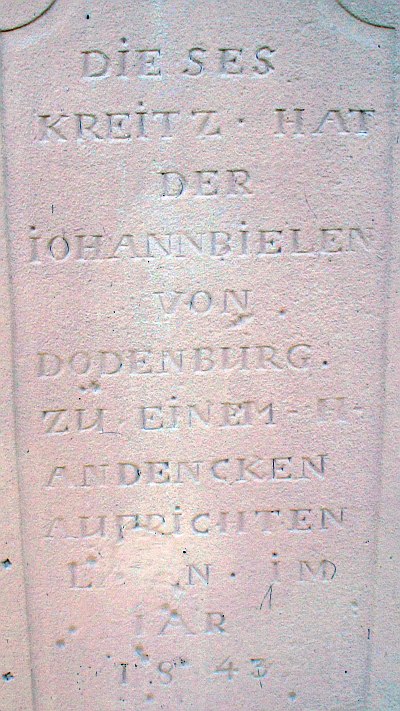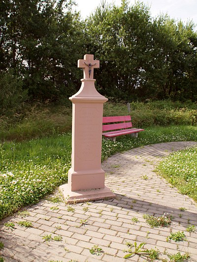 Das Abschlußkreuz ist später einmal erneuert worden. Mit Eisencorpus. Das Kreuz wurde die letzten Jahre neu Renoviert und eine kleine Anlage mit Ruhebank angelegt.