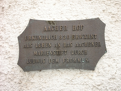 Aacher Straße 2/4/6 (geschützt nur Nr. 2). Ehemaliger Aacher Hof (Hof des Aachener Marienstifts). Baukomplex mit Teilen des 16. bis frühen 20. Jahrhunderts, in Teilbereichen ungünstig verändert. [1]