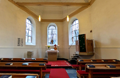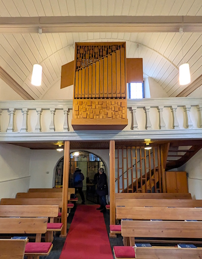 In den Jahren 1965/66 wurde der Innenraum unter der künstlerischen Leitung des Morbacher Bildhauers Klaus Rothe neu gestaltet. Nach seinen Entwürfen erhielt die Kirche eine Kanzel mit den Motiven der vier Evangelisten an der Brüstung, einen steinernen Altar mit den Abendmahlssymbolen "Kelch", "Ähre", "Lamm" und "Traube" sowie einen Taufstein mit umlaufender Wasser-Kreuz-Symbolik und einer mit blauen Mosaiksteinen ausgekleideten Vertiefung für das Wasser. Die Kleinorgel ohne Pedal von 1972 stammt aus der Orgelwerkstatt Oberlinger. Anfang der 1980er Jahre erhielt die Kirche eine neue Turmuhr mit Ziffernblatt sowie eine elektronische Steuerung für Uhrzeiger und Glockenschlag. [2]