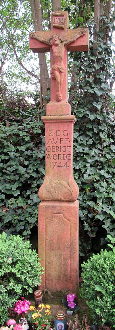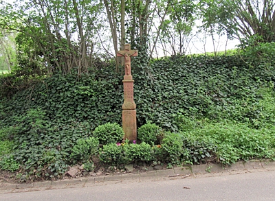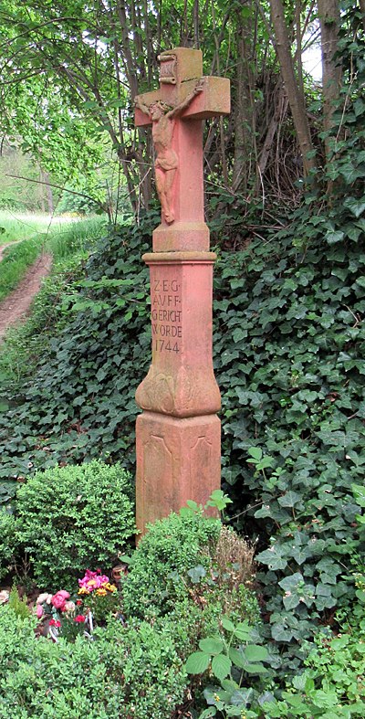 Wegekreuz nordöstlich der Ortslage an einem Wirtschaftsweg. Schaftkreuz in barocken Formen, neu bezeichnet 1744. Das Abschlußkreuz wohl jünger (das Originalkreuz laut Meyer mit kleeblattbogigen Balkenenden). [1]