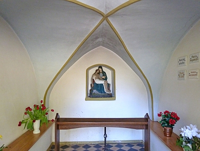 Eine alte Figur der Schmerzhaften Muttergottes trug die Jahreszahl 1729 mit den Buchstaben S und M. Das könnte Sankt Maria heißen oder die Namensabkürzung der Stifter sein. - Diese Statue wurde vor vielen Jahren entwendet.