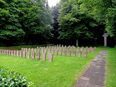 Anfang Dezember 1944 wurde von der Deutschen Wehrmacht in Feusdorf ein Lazarett für verwundete Soldaten aufgebaut und der Ort zum Hauptverbandsplatz erklärt. Wegen Platzmangels auf dem Friedhof an der Feusdorfer Kapelle wurde an der Straße nach Esch ein Soldatenfriedhof inmitten eines Waldes angelegt. Hinweisschilder sind vorhanden. [1]