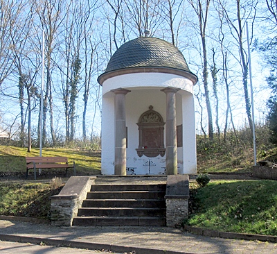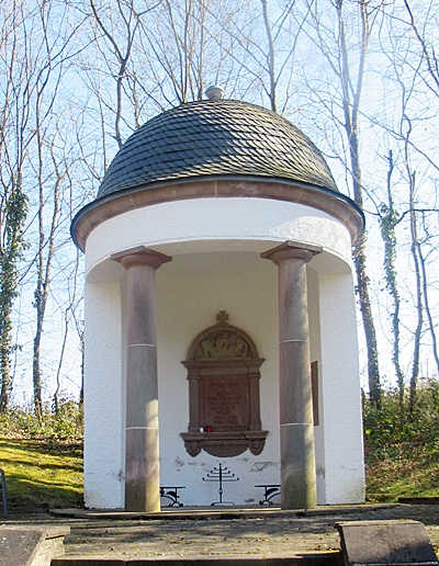 Hauptstraße, am östlichen Ortsausgang. Kriegerdenkmal des Ersten Weltkriegs in Form eines kleinen Rundtempels. [1]
