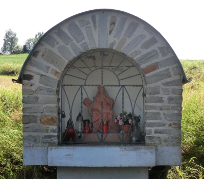 Heiligenhäuschen nördlich der Ortslage am Weg nach Longkamp. Rund geschlossener verputzter Mauerblock mit kleiner Rundbogennische, angeblich um 1780 errichtet. Innen neuere Pietà. [1]