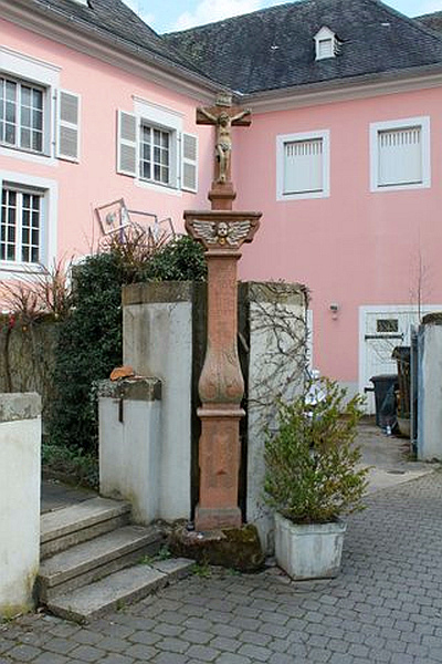 In Folz, bei der Einmündung in die Brückenstraße. Kreuzigungsbildstock, bezeichnet 1668. Die Assistenzfiguren nicht erhalten. [1]