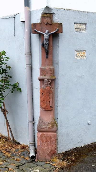 Schaftkreuz, bezeichnet 1753, renoviert 1846. Der Metallkorpus möglicherweise alt. [1]