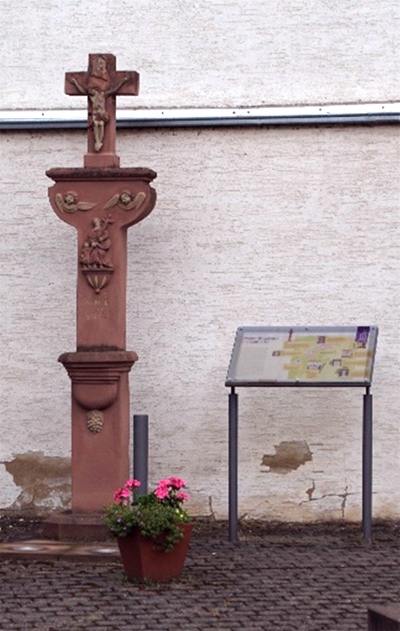 Kreuzigungsbildstock, bezeichnet 1827. Die Beifiguren nicht erhalten. [1]
