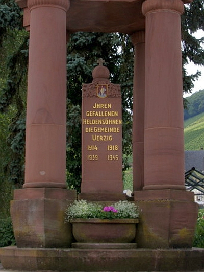 Das Ehrenmal für die Gefallenen der Kriege wurde 1925 von dem Trarbacher Künstler Wendhut gestaltet. Die Sandsteinpfosten im Eingangsbereich stammen vom alten Rathaus aus dem Jahre 1596. [2]