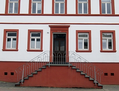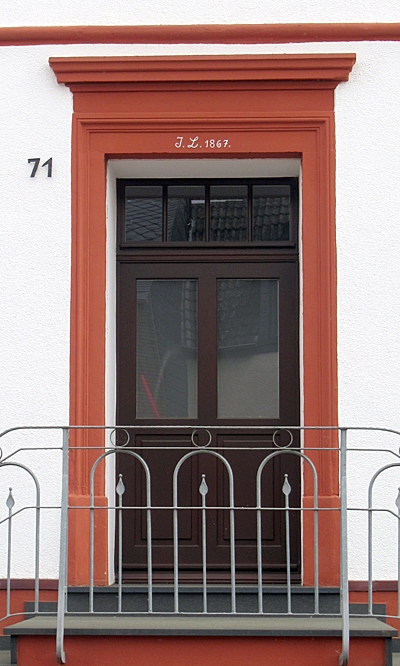Wohnhaus, am Eingang bezeichnet 1867. Traufständiger zweigeschossiger Putzbau in spätklassizistischen Formen. Fenster- und Türflügel neu, sonst unverändert erhalten. [1]