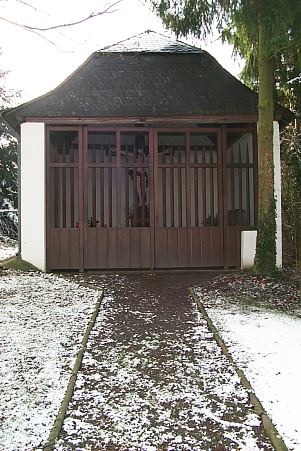 Nordöstlich des Klosterhofs Siebenborn an der Straße nach Maring: Wegekapelle; Krüppelwalmdachbau, bezeichnet 1746; Kruzifix, Anfang des 16. Jahrhunderts. [1]