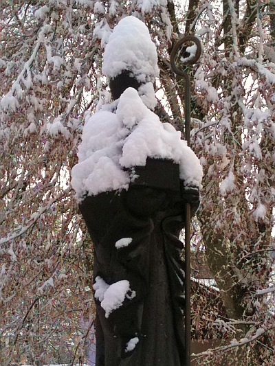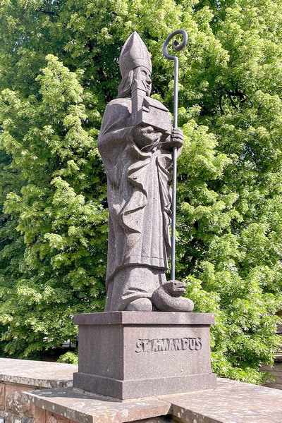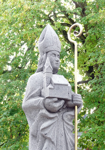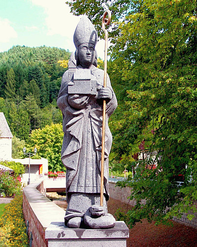 An der Brücke über den Altbach. Konrad Schmitt (Kordel) hat die Basalt-Statue geschaffen, finanziert wurde sie durch einen anonymen Spender. [1]