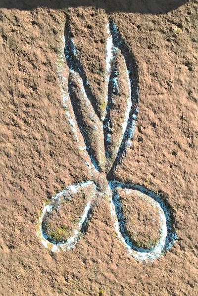 Deutlich zu erkennen ist auf dem Kreuz eine Schere. Dies könnte ein Hinweis auf den Errichter oder Spender sein, die Schere ist und wird im Mittelalter für die Zunft der Schneider verwendet..[2]