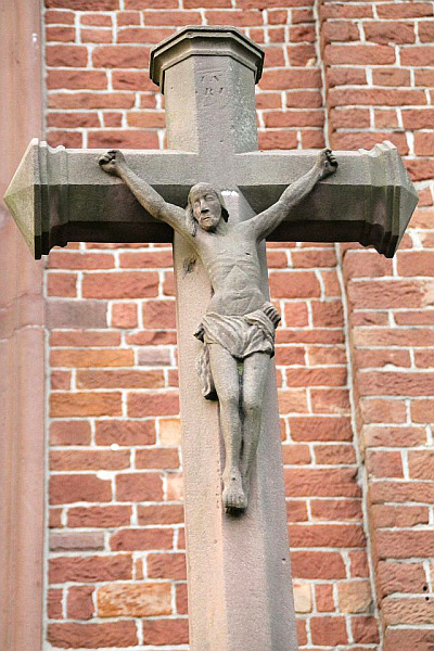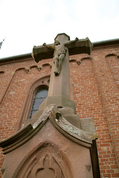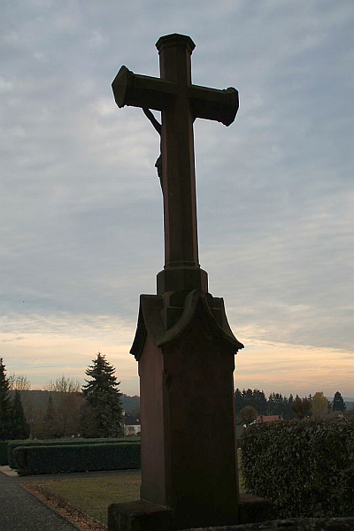 Südlich der Kirche auf dem Friedhof das Friedhofskreuz in neugotischen Formen, um 1850/60. [1]