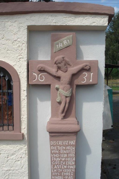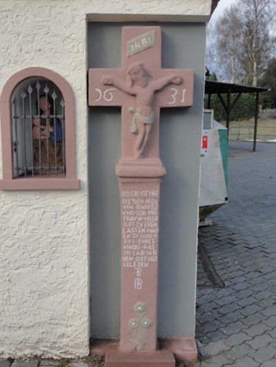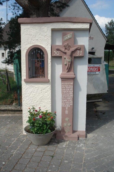 Auf dem Aulend, in der Nähe des Feuerwehrhauses. Heiligenhäuschen mit kleiner Rundbogennische. Seitlich eingelassen ein Schaftkreuz, bezeichnet 1631. [1]