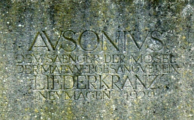 Zwischen Moselstraße 17 und 19. Ausoniusstatue, 1929 durch den Männergesangverein "Liederkranz" in einem kleinen Park unterhalb der Peterskapelle errichtet. [1]