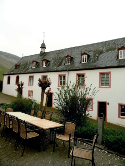 An der Straße nach Zeltingen. Hof der Abtei Sankt Martin in Trier, 975 erstmals urkundlich erwähnt. Wegen seiner hervorragenden Weinlage war es eines der wertvollsten Besitztümer des Klosters. Kapelle von 1672. [1]