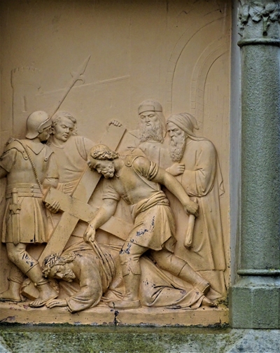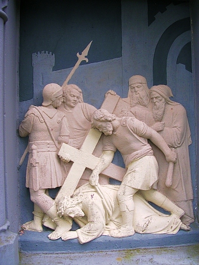 Jesus fällt zum zweiten Mal unter dem Kreuz.