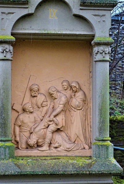 Jesus fällt zum dritten Mal unter dem Kreuz.