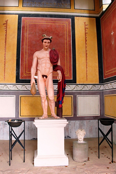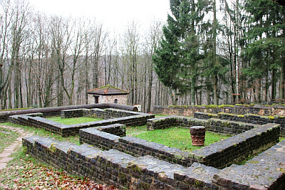 Römische Tempelanlage an der Hauptverkehrsstraße zw. Rom und Trier, an der Nordwestecke eines Tempels konnte ein ursprünglich mehr als 15 m tiefer Brunnen freigelegt werden, neben Steinen, Erde und Architekturteilen, Inschriftfragmenten, figürlichen Reliefs und dem Kopf einer Statue fand sich auch eine Münze aus der Zeit um 400 n. Chr., die belegt, dass der Brunnen bis zu dieser Zeit intakt war, nach 392 n. Chr. Wurden die Tempel und Weihegaben des heiligen Bezirks zerstört und nach und nach teilweise in den Brunnen geworfen. [1]