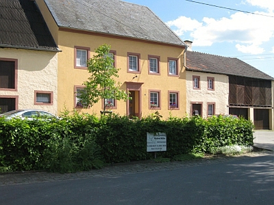 Straßenbildprägender Zweiseithof mit niedrigeren Wirtschaftstrakten, dessen Wohnhaus mit der Jahreszahl 1830 bezeichnet ist, bei Sanierungsarbeiten wurde im Sockelbereich der Wände der guten Stube eine Bauernmalerei entdeckt und wiederhergestellt, außerdem stellte sich heraus, dass der Einbauschrank mit Takenplatte mit der 1831 datierten Uhr hergestellt wurde