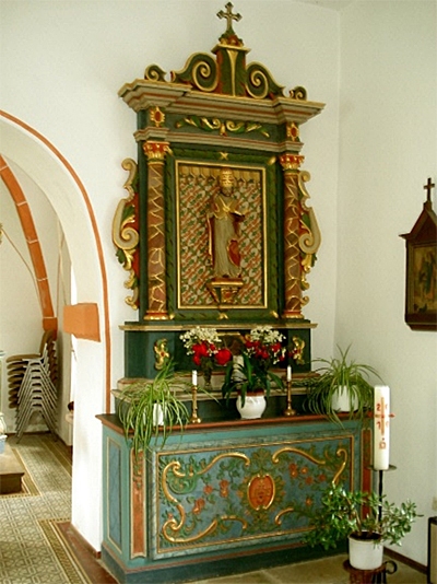 Corneliuskapelle, die in den 1980er Jahren teilweise in Eigenhilfe unter großem Engagement der Bewohner restauriert wurde.