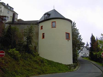 Es handelt sich um den nordöstlichen Wehrturm der Befestigungsanlage (Stadtmauer), die frühestens ab 1336 (Verleihung der Stadtrechte durch Ludwig den Bayer) errichtet werden durfte. 1352 wird erstmals erwähnt, dass die Wehranlage sich bewährt habe gegen den Ansturm der Truppen des Trierer Kurfürsten.