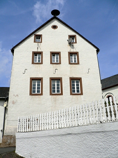 Das ehemalige Schulhaus im Schatten der Kirche wurde 1807 erbaut und ist als Baudenkmal unter Schutz gestellt. Im Obergeschoss ist eine Wohnung, im Untergeschoß tagt im ehemaligen Schulsaal der Ortsgemeinderat. [1]