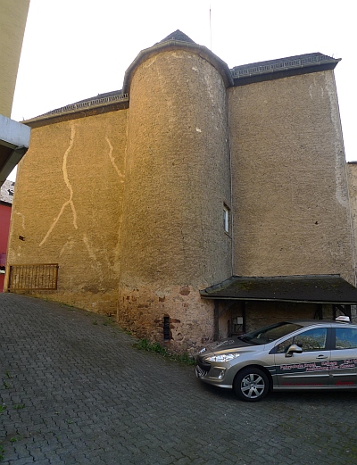 Halbrund vorspringender Stadtmauerturm, Teil des späteren Wohnhauses. [1]