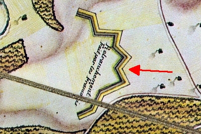 Die in weitem Ring auf den Höhen um die Stadt gelegenen Außenwerke hingegen dürften ganz anders ausgesehen haben: Man findet heute noch Spuren der Feldschanzen in der Landschaft. Sie sind zwar als leichte Erhebungen auszumachen2, die Ackererde an den betreffenden Stellen ist aber nicht mit ortsfremden Steinen durchsetzt, wie es an Standorten von ehemaligen Steinbauwerken der Fall zu sein pflegt. Da etwa vorhanden gewesene Steine kaum restlos ausgelesen und abgefahren worden sein können, sind diese Schanzen wohl reine Erdwerke gewesen, allenfalls verstärkt durch Palisaden, Faschinen oder Schanzkörbe. Für solche "rampars de bois et de terre" oder "Bohlenwerke" im ursprünglichen Sinn sprechen auch die verwendeten Werkzeuge, Äxte, Hiebmesser, Schaufeln und Hacken.