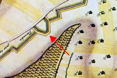 Die in weitem Ring auf den Höhen um die Stadt gelegenen Außenwerke hingegen dürften ganz anders ausgesehen haben: Man findet heute noch Spuren der Feldschanzen in der Landschaft. Sie sind zwar als leichte Erhebungen auszumachen2, die Ackererde an den betreffenden Stellen ist aber nicht mit ortsfremden Steinen durchsetzt, wie es an Standorten von ehemaligen Steinbauwerken der Fall zu sein pflegt. Da etwa vorhanden gewesene Steine kaum restlos ausgelesen und abgefahren worden sein können, sind diese Schanzen wohl reine Erdwerke gewesen, allenfalls verstärkt durch Palisaden, Faschinen oder Schanzkörbe. Für solche "rampars de bois et de terre" oder "Bohlenwerke" im ursprünglichen Sinn sprechen auch die verwendeten Werkzeuge, Äxte, Hiebmesser, Schaufeln und Hacken.