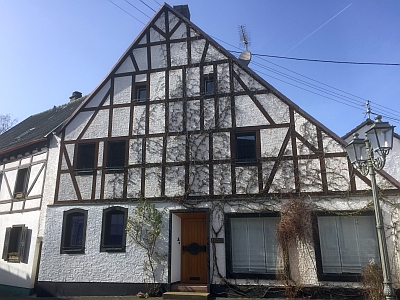 Das imposante Fachwerkhaus wurde um 1740 erbaut. Es ist eines der letzten Fachwerkhäuser, die nach 3 Großbränden im alten Ortskern von Manderscheid erhalten geblieben sind. Das Haus weist eine weitere Besonderheit auf. Im Volksmund wird es als "Mählich Haus" bezeichnet. 1794-1815 wurden die linksrheinischen Gebiete durch Napoleon besetzt und auch in der Eifel wurde die französische Verwaltung eingeführt. Das Haus war repräsentativ und umfasste mehrere Räume im Erdgeschoß, so daß die französischen Besatzer dort die "Mairie" (= Bürgermeisteramt) einrichteten. Das Haus war also eigentlich das "Mairisch-Haus", benannt nach dem französischen Wort für "Bürgermeisterei". Die Eifeler, mit der französchen Sprache nicht so vertraut, machten daraus das "Mählich-Haus". [1]