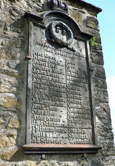 Auf der Tafel sind die Namen der Gefallenen aus dem Kreise Daun aufgeführt. Weitere Tafeln, die nach dem ersten und zweiten Weltkrieg angebracht wurden, enthalten die Namen der Gefallenen der beiden Weltkriege aus Daun. [1]