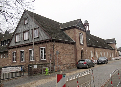 Eingeschossige, symmetrisch aufgebaute Anlage aus drei durch kurze Querflügel miteinander verbundene Satteldachbauten in Formen des Heimatstils der 1930 / 40er Jahre. [1]