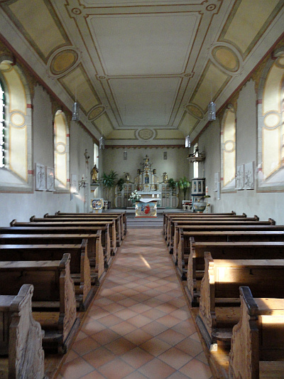 Die Kirche ist wahrscheinlich auf den Grundmauern der 1357 erbauten ersten Kapelle errichtet worden und stammt aus dem Jahre 1787. 1856 wurde die Kirche um eine Fensterachse erweitert und später ein Glockenturm angebaut. [1]