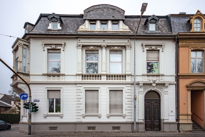 Späthistoristisches Eckwohnhaus, sandsteingegliederter Mansarddachbau, 1881; Ausstattung. [1]