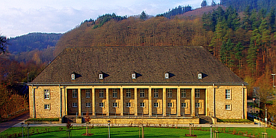 Hochschule für Lehrerausbildung; 1938/39; vier einheitlich gestaltete blockartige Walmdachbauten, verbunden durch eingeschossige Gänge, langgestreckte Turnhalle und ehemalige Direktorenvilla, eine als Sportplatz angelegte Freifläche begrenzend. [1.]