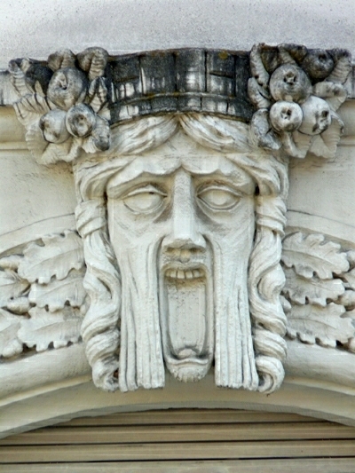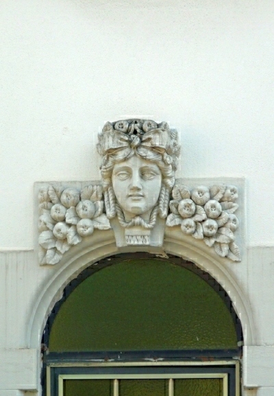 Wohnhaus, Mansarddach mit aufwändigem Jugendstildekor. [1]